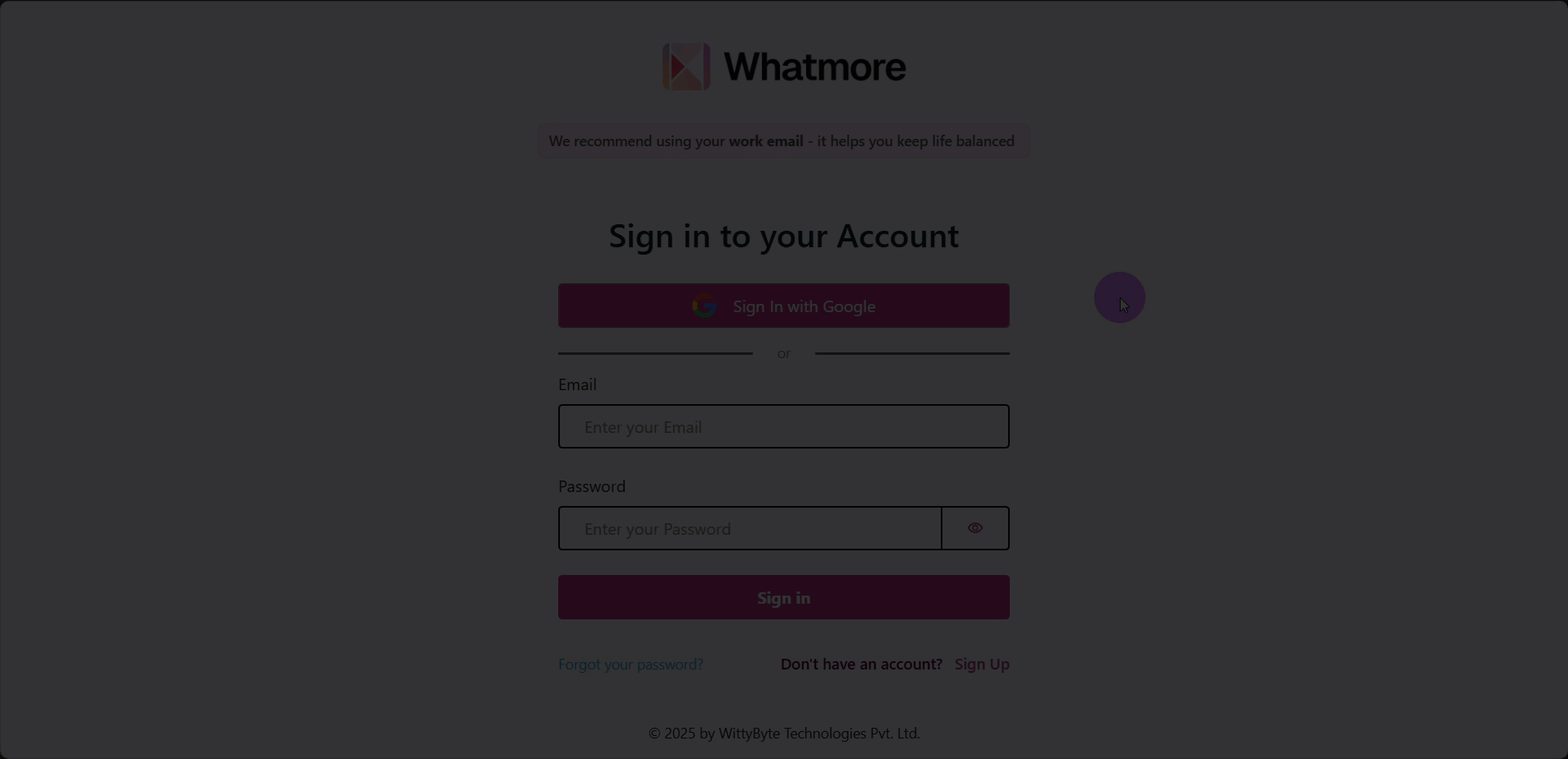 Creating your account in Whatmore is the first step to start generating images and videos with AI, managing your projects, and accessing all platform features!