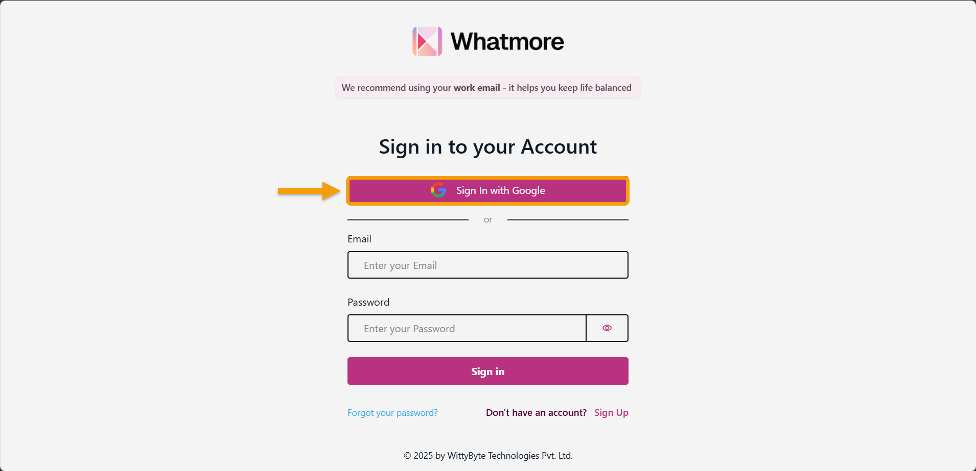 Creating a Whatmore AI Studio account is the first step to start generating professional images and videos for your campaigns. Signing up gives you access to credits, templates, and collaboration features designed to help you create high-quality content more efficiently and consistently.