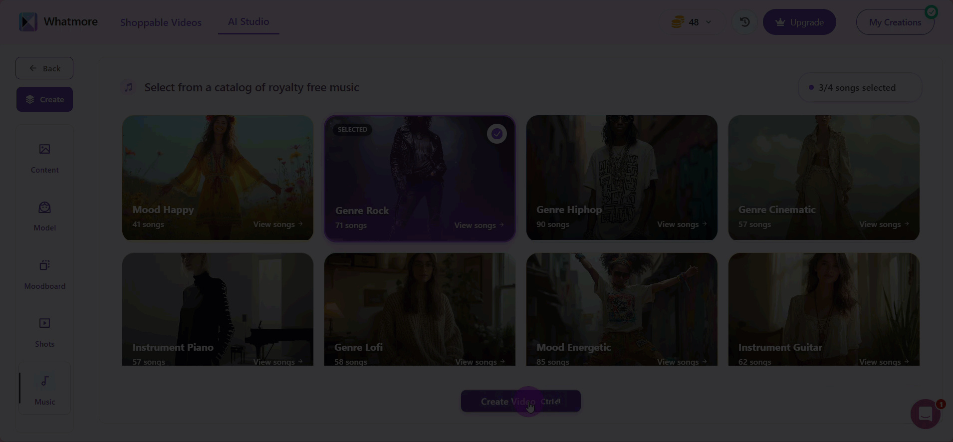 Select the songs you want to include in your video. You can select up to 4 songs.